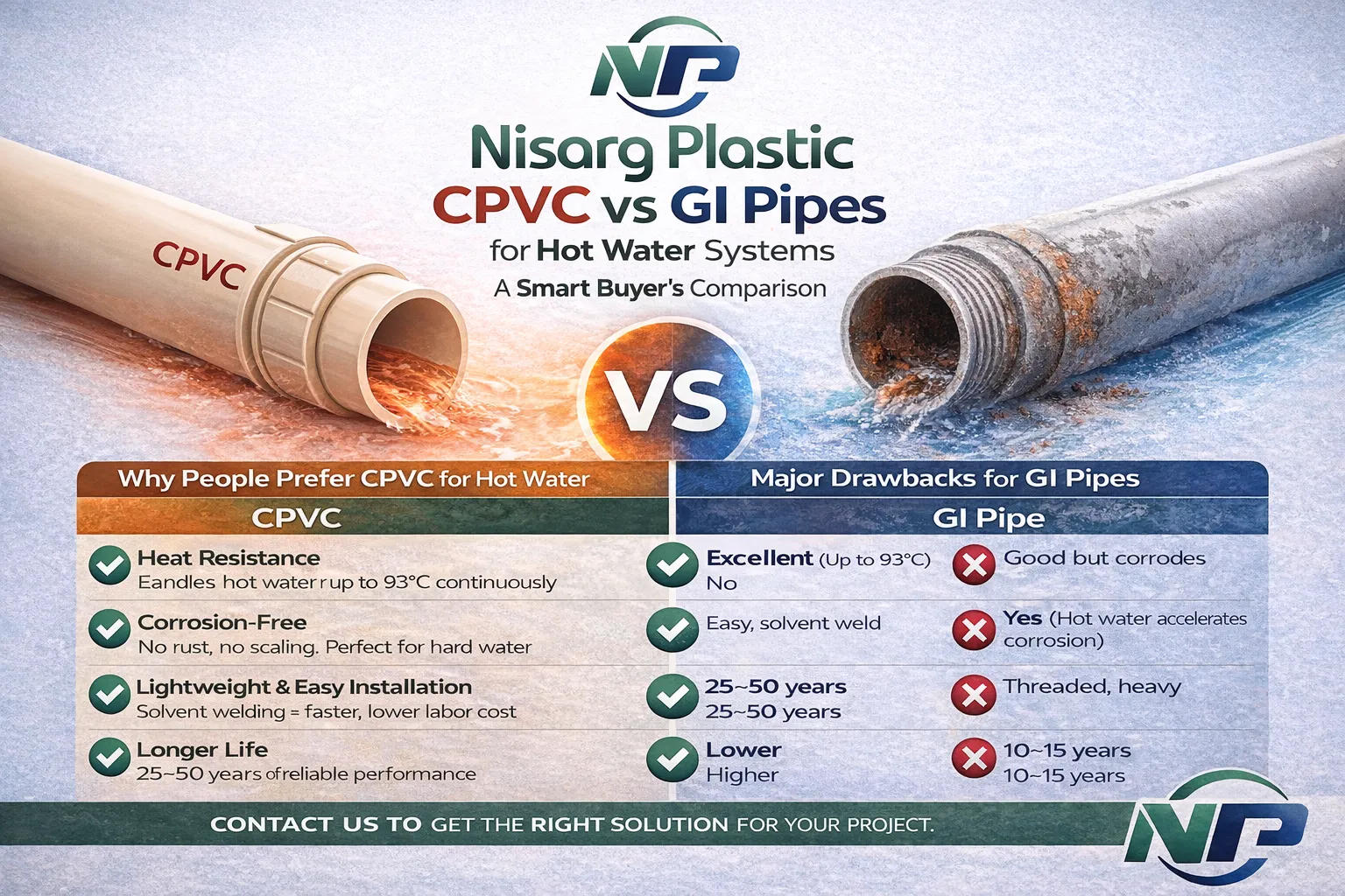 Many projects still compare CPVC and GI pipes based only on upfront material cost. However, hot water applications demand far more than basic strength. Temperature, pressure, water chemistry, and time all play a critical role in determining which material will truly perform.